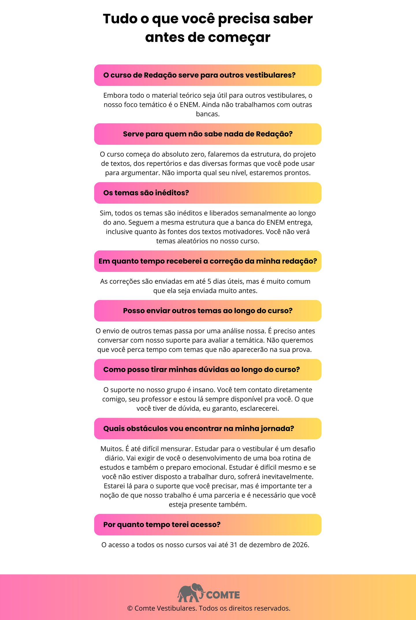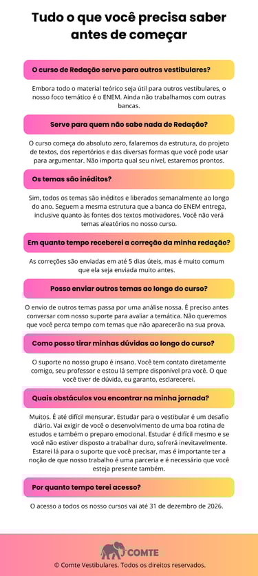 No Comte a regra é clara: só adivinha tema quem não te ensina a escrever. Aqui nós fazemos um trabalho sério e não brincamos com sua saúde.